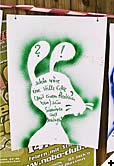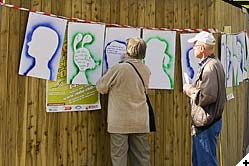 Auf farbigen "Denkzetteln" mit verschiedenen Köpfen (80 an der Zahl) konnte alles niedergeschrieben und am Bauzaun des Hans-Sachs-Hauses angehängt werden.